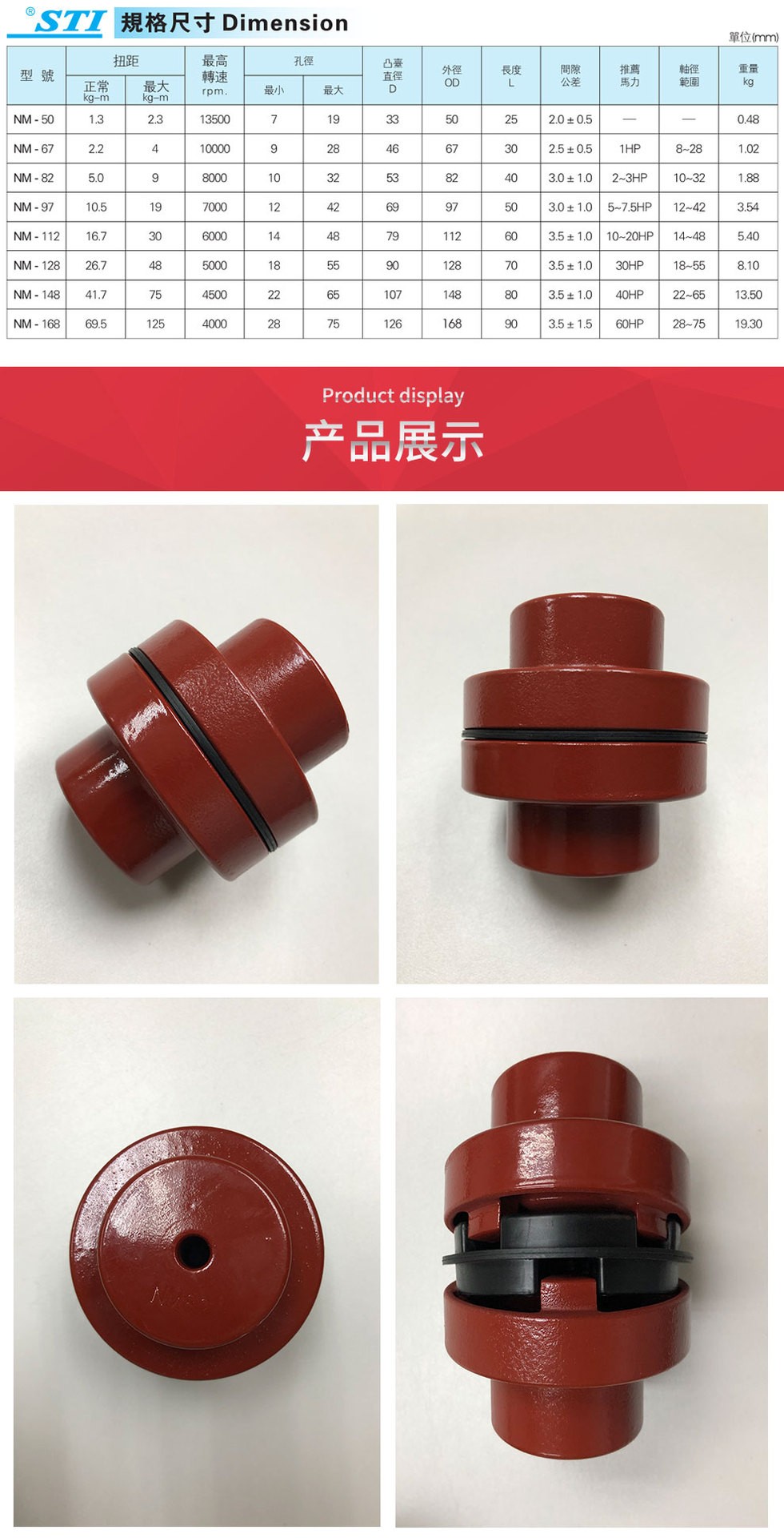 STI S 系列尼龙弹性联轴器是一种性能优良的传动部件,具有以下特点: