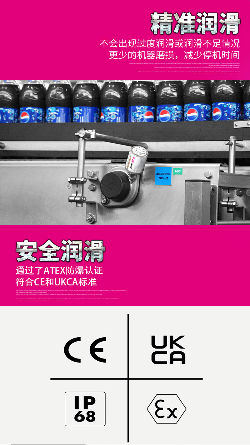定时精准注油:可设定 1-12 个月内全自动、均匀、准时、准确地注入设备。
