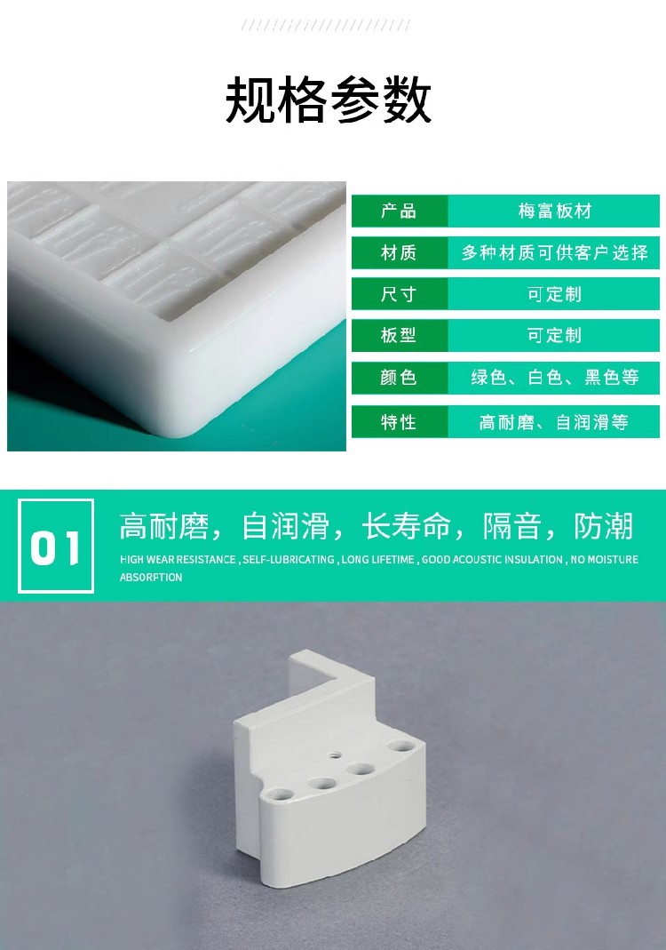 自润滑性良好:板材具有自润滑性,可降低摩擦系数,使与之接触的部件运行更加顺畅,减少能量损耗,同时也减少了对外部润滑的需求,降低了维护成本和维护工作量。