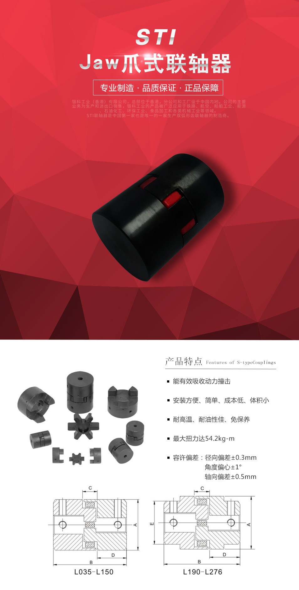 STI S 系列尼龙弹性联轴器是一种性能优良的传动部件,具有以下特点: